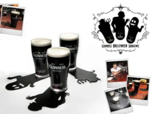Guinness commissioned these scary branded coasters and branded glasses to be made in order to promote their drink and brand on Halloween. Cleverly designed in the shape of scary shadows of the Guinness glasses, for every drink bought, customers received a free coaster to put their drink on. A low cost promotion with a fang-tastic effect!