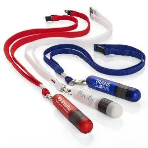 As above but attached to a lanyard. If you want to get conversations flowing at an event or are updating your staff lanyards, these lip balm lanyards will certainly do the job!