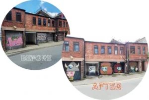 We couldn’t believe our luck when international street artist, printmaker and emcee Kid Acne agreed to replace the graffiti on our city centre building with some mural art. After renovating the former print house at the Don Press, Sheffield in 2015, we felt it was time to focus on the outside of the building. Our MD James Biggin explains how it all came about: