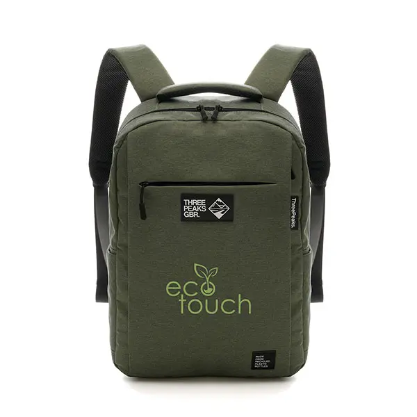 Made using 100% recycled plastic bottles, (600D certified RPET), the Three Peaks RPET bag pack range is new this year. It includes three backpack styles (and two larger travel bags) and which include multiple inner pockets, padded shoulder straps and a sleeve which fits up to a 16 inch laptop. Ideal for the commute to work, a day trip or even to take on holiday!