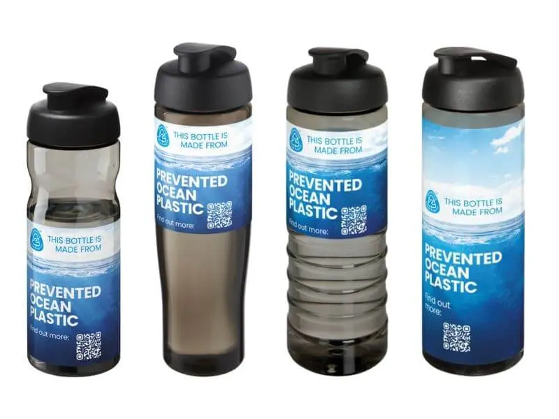 We couldn’t not mention the Prevented Ocean RPET plastic in this blog. Prevented Ocean Plastic™ is ocean bound plastic. This is material collected from areas at-risk of ocean plastic pollution and are processed with full traceability. Made in the UK and 100% recyclable, this collection of branded bottles come in a range of colours and styles to suit your brand.