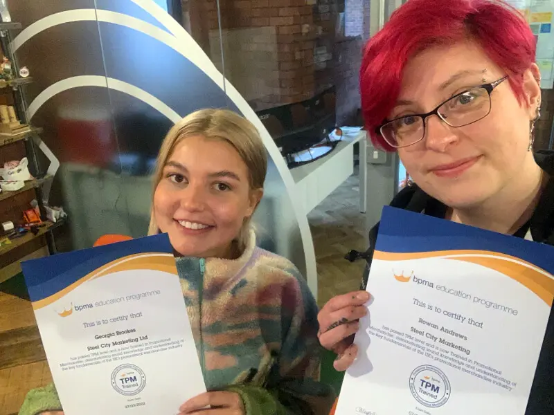 Two members of the Steel City team, Georgia Brookes and Rowan Andrews have recently been awarded their TPM (Training in Promotional Merchandise) BPMA...