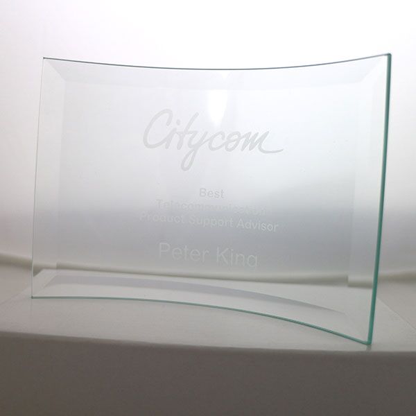 10 x 14.5cm Jade Glass Bevelled Crescent Award - Engraved