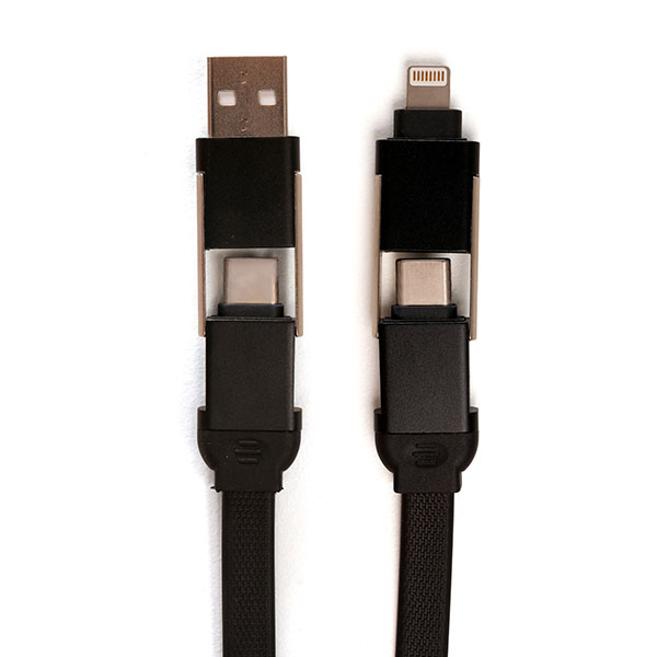 It features a combi USB-C / USB-A to USB-C / Lightning connector set, giving fast-charge support for devices with USB-C and Lightning ports when used with a compatible power source.
