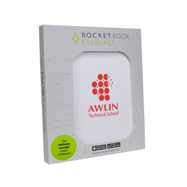 Each unit includes the Rocketbook Core notebook, 1 erasable pen (black), 1 microfibre towel and a gift box.