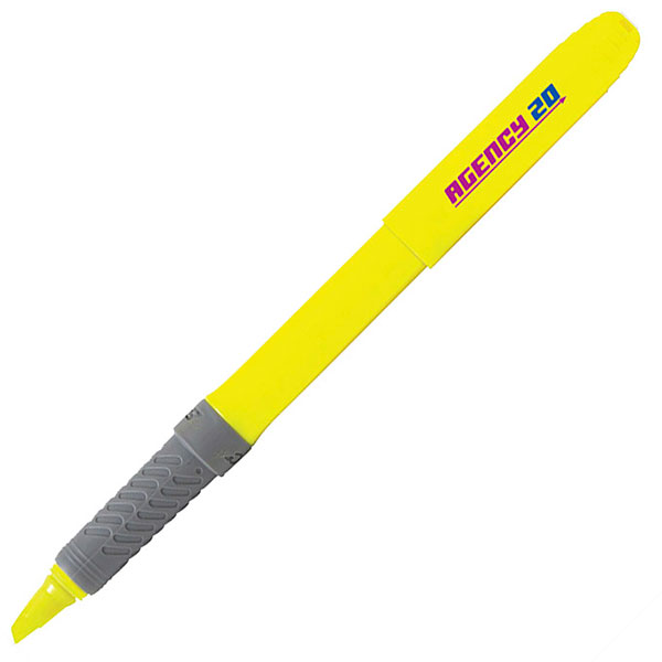 139 mm long with a chisel tip for broad highlighting and fine underlining; textured rubber grip.