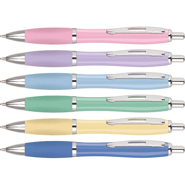 145 mm long; pastel finish barrel with chrome trim and push-action mechanism.