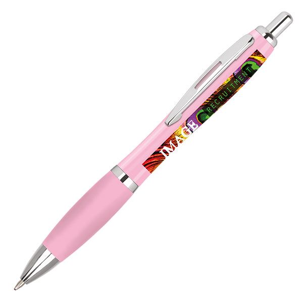 Contour® standard ballpen Push action The UK’s best selling promotional plastic pen Translucent barrel Chrome trim and matching coloured soft rubber grip Refillable Ink colour: Black