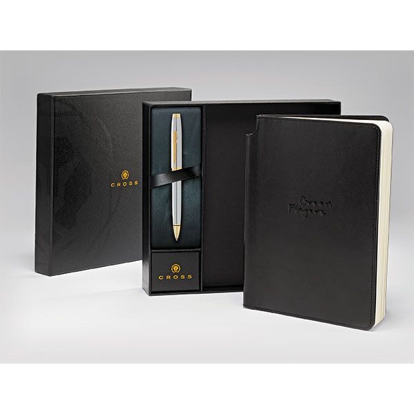 CROSS journal and ballpen gift set Contains medium Classic journal and Coventry ballpen 160 pages of white lined 100gsm paper Ribbon page marker, corner elastic closure band and pen storage slot The paper used in this product is from responsibly sourced wood from sustainably managed forests Full certification can be provided upon request