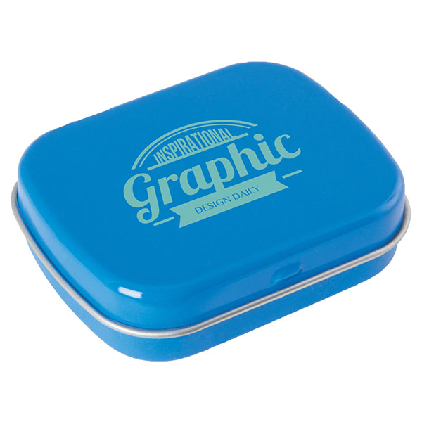 Printed 1 colour on the lid; available tin colours include Black, Green, Grey, Multi Coloured, Orange, Pink, Purple, Red, White and Yellow.
