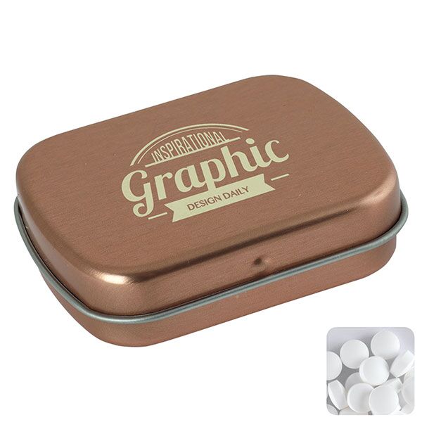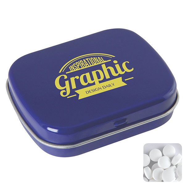 Flat mint tin Filled with approximately 25g of standard dextrose mints Mints are vegan friendly and gluten-free Made with dextrose, a natural sweetener Tamper proof seal Can also be filled with extra strong dextrose mints or choco mix (in several colours)