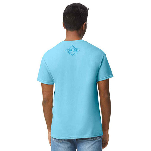 100% cotton; white 175gsm, coloured 180gsm; classic fit in sizes S-5XL (3-5XL at extra cost); tubular body with ribbed collar and taped neck and shoulders.