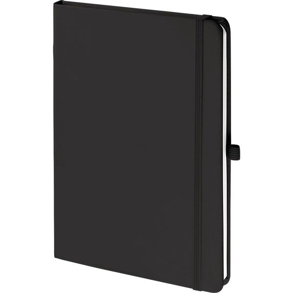 Mood® soft feel notebook High quality PU covered A5 notebook 80 sheets of lined, 80gsm ivory paper Elastic closure band, ribbon marker, pen loop and expandable back inside pocket Paper used in this product comes from certified and responsibly sourced and managed forests