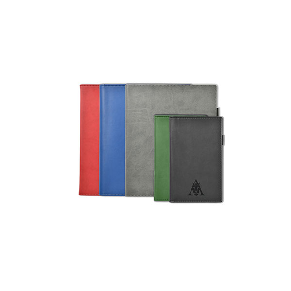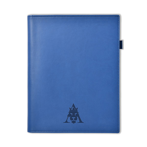 Dimensions 270 x 225mm; 90gsm cream or white paper; comb-bound diary with ribbon marker, pocket, pen loop; perimeter-stitched soft-feel PU cover.