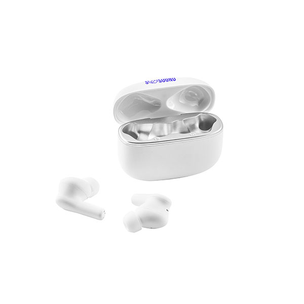 Noise cancelling wireless earbuds in recycled ABS case