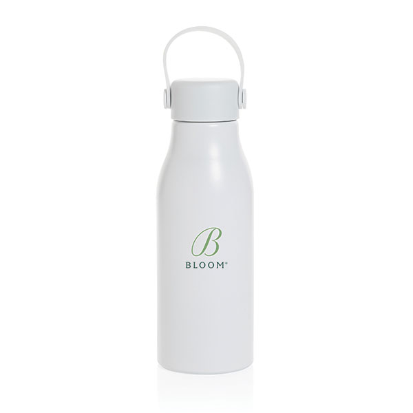 Capacity 680 ml; dimensions 213 x 73 x 73 mm; screw-on lid with carry strap; single-wall construction.