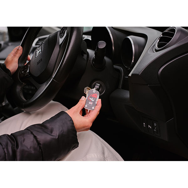 Overall size: 60 x 35 mm; lightweight recycled plastic construction suitable for keyring or pocket use.