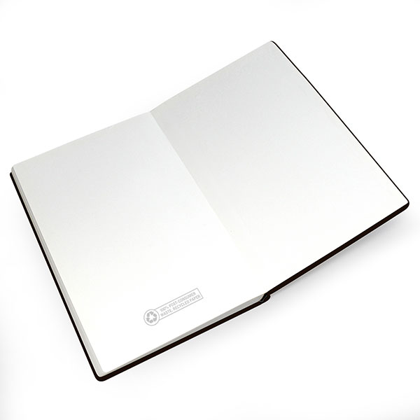 Dimensions: 215 x 142 x 12 mm; 96 sheets of 80gsm lined recycled paper; sewn bound for a lay-flat finish.