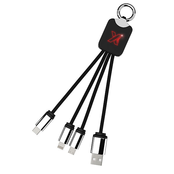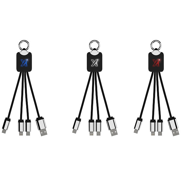 Available in multi-coloured finish; the engraved branding illuminates when the cable is powered, ensuring high visibility.