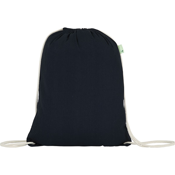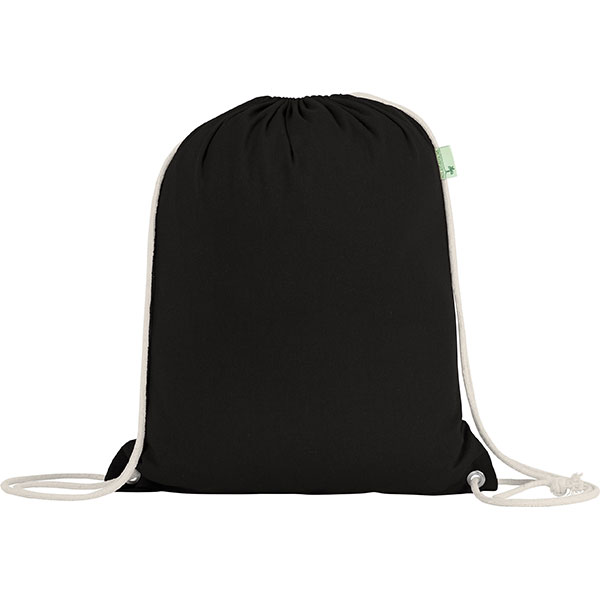Dimensions 460 x 360mm; made from 60% certified recycled cotton and 40% rPET; cotton draw cords and metal eyelets.