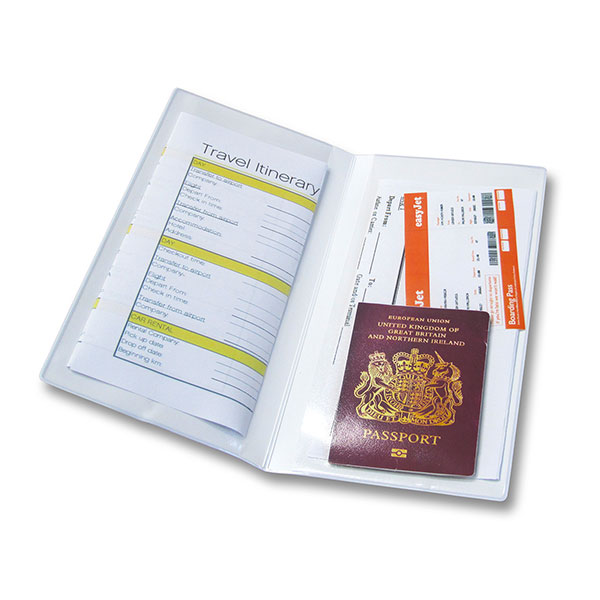 Designed for essential travel documents-fits passports, boarding passes and cards; two clear pockets provide organised visibility.