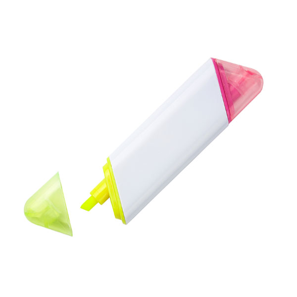 Ink colours: Yellow and Pink; caps match ink colours; barrel is white.