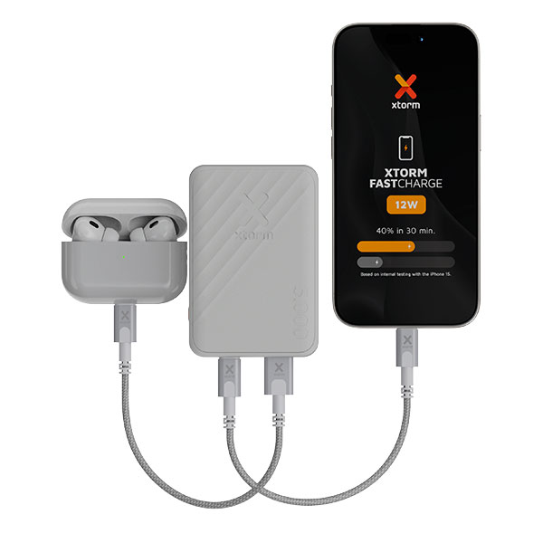 12W output; supplied with a fast-charge USB-A to USB-C cable.
